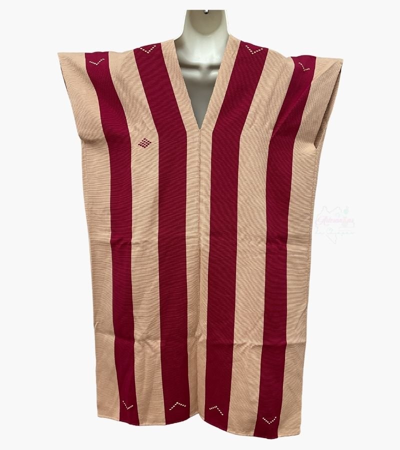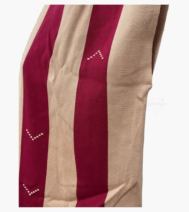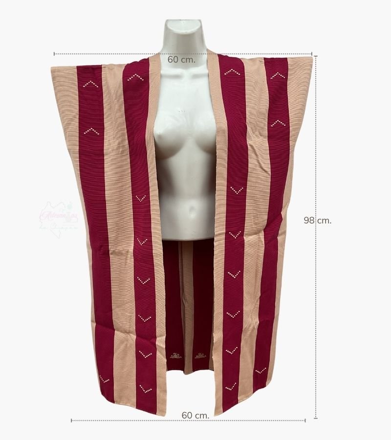 Este huipil tipo saco/gabán en tonos rojo profundo y beige es una prenda diseñada para quienes quieren proyectar seguridad, elegancia y carácter. Su diseño largo y abierto estiliza la figura, mientras que sus líneas verticales.