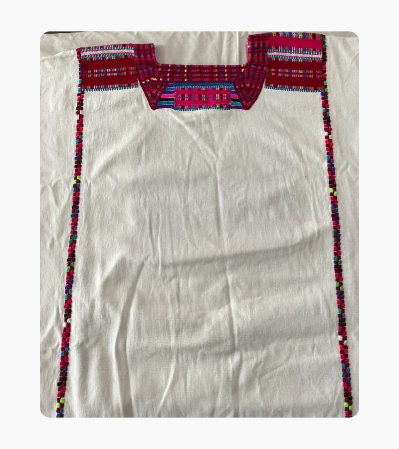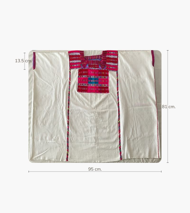 El Huipil de San Juan Cancuc. Arte que cobra vida en cada detalle. Con una geometría impecable, hilos vibrantes que iluminan cada rincón y un lienzo blanco de algodón como base, este huipil se transforma en una explosión de color y creatividad. Cada pieza es elaborada a mano con meses de dedicación, haciendo de cada huipil una pieza única e incomparable. Esta obra maestra refleja las tradiciones entretejidas durante generaciones.